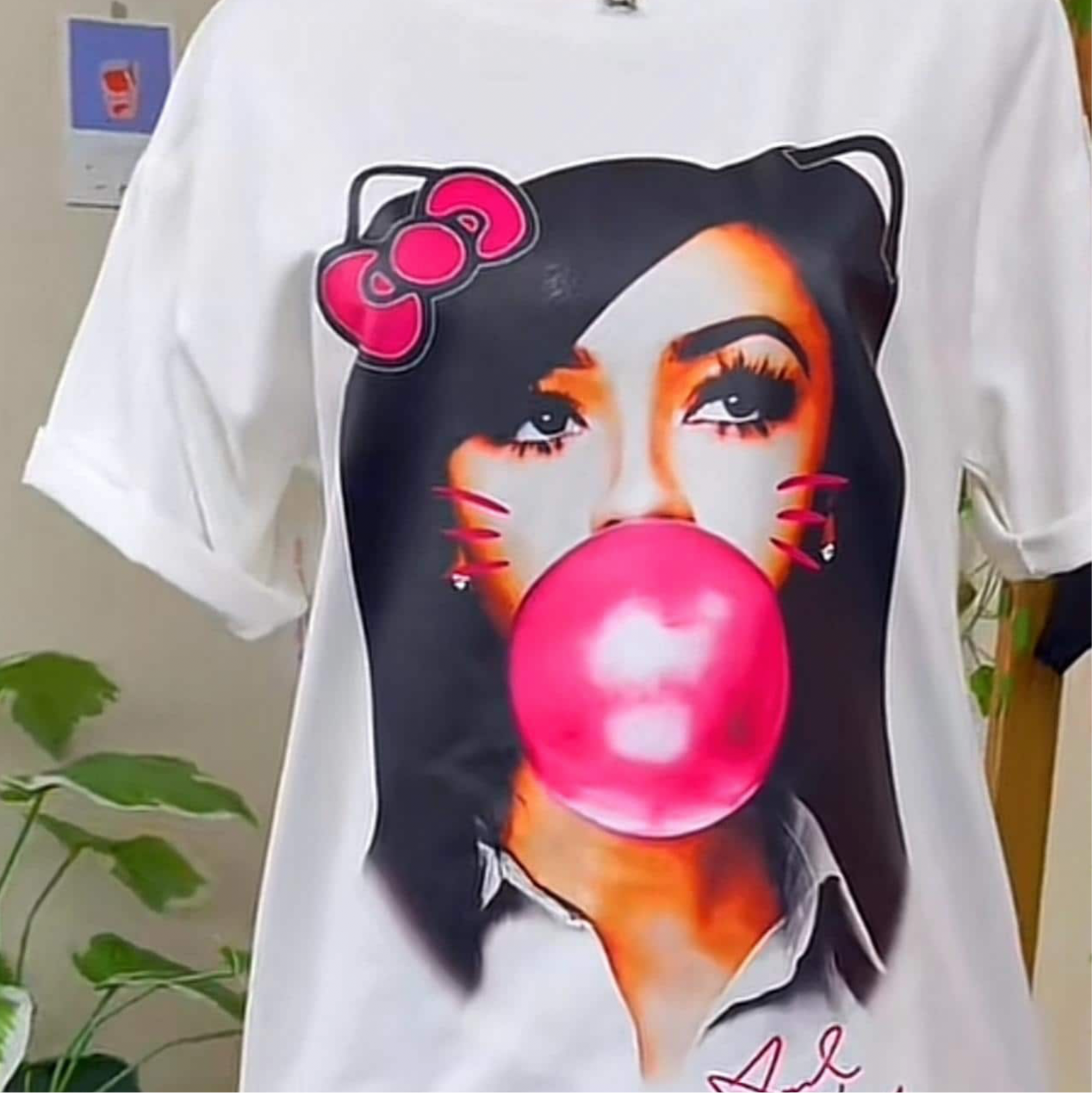 FREE THUG HELLO KITTY Boxy Vintage Shirt Graphic Tee Streetwear Y2K